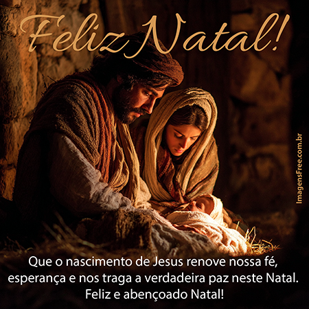 Mensagem com Frase de Feliz Natal Abençoado com Foto Realista de José e Maria