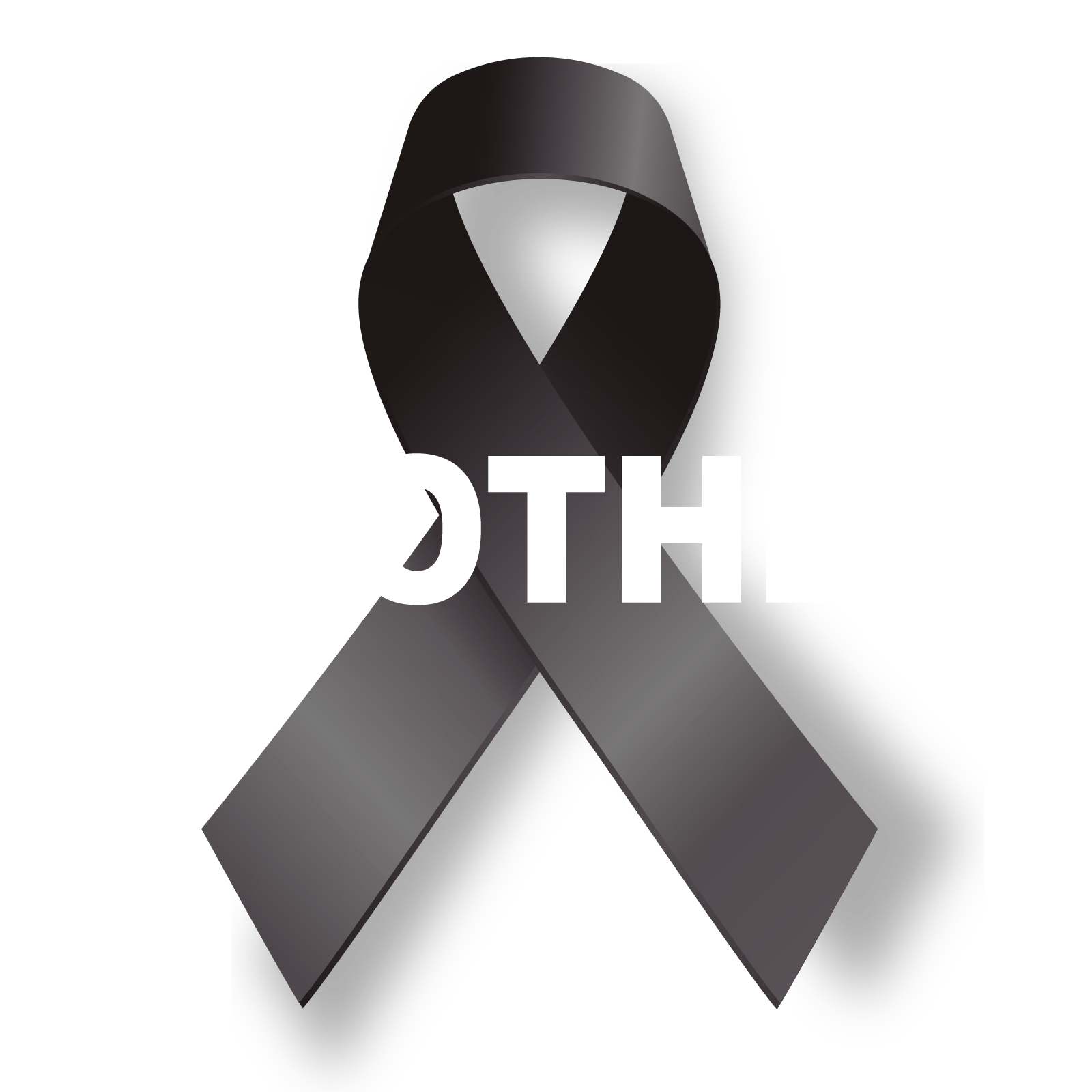 Black mourning ribbon for brother with the word ‘brother’ in white, PNG with transparent background:
