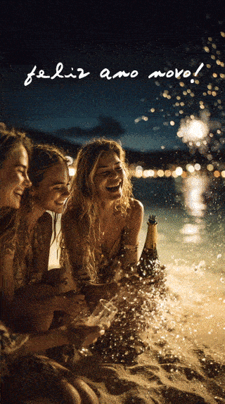 GIF animado de virada de ano de amigas em uma praia.GIF moderno, jovem e de alta qualidade.Imagem hiper-realista gerada por inteligência artificial. Clique na imagem com o botão direito do mouse ou pressione, se estiver usando o celular, até aparecer a opção “Baixar”.