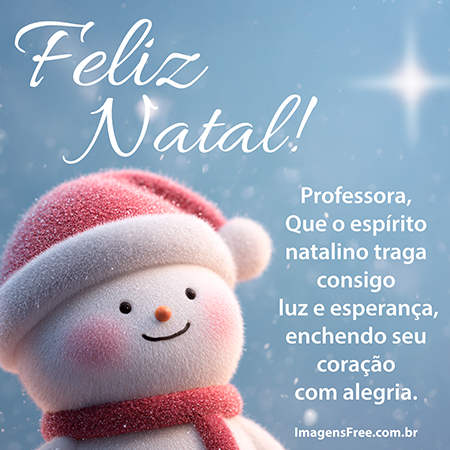 Mensagem de Natal para Professora com Foto de Boneco de Neve e Estrela de Natal