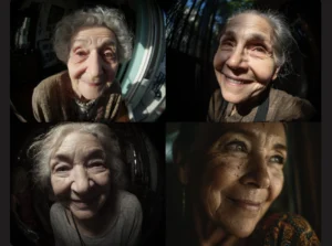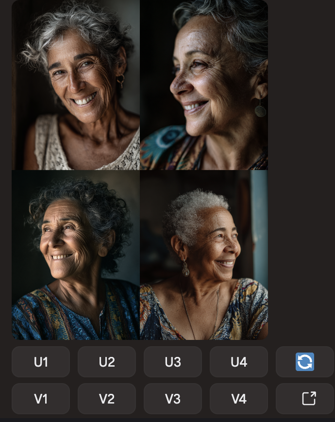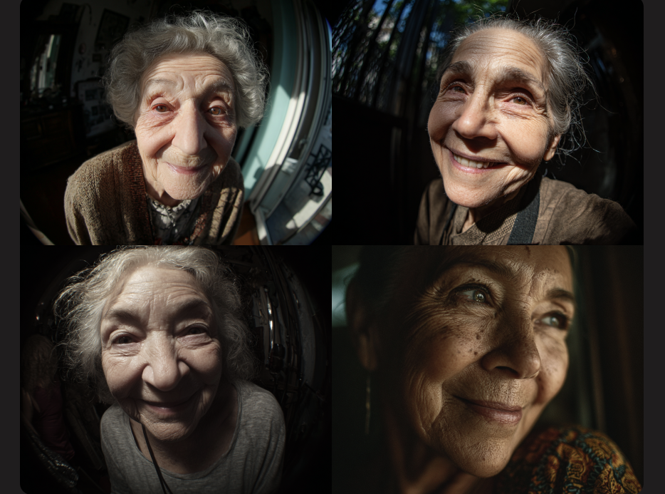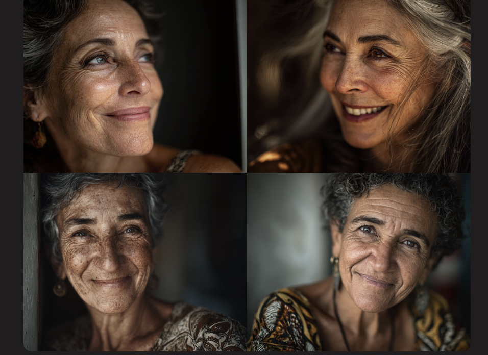 | Retrato Fotorrealista | Uma mulher idosa sorrindo, iluminação natural, detalhes na pele, fotografia de retrato, lente 85mm, --ar 3:4 |